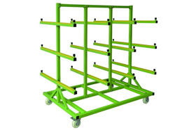 玻璃推車 玻璃推車,是一種跟倉儲(chǔ)貨架配套非標(biāo)定制的配套工具,專門用于做玻璃的搬運(yùn)的物流工具。 產(chǎn)品特點(diǎn) 1.噪音小,搬運(yùn)中發(fā)出聲音小 2.有一...